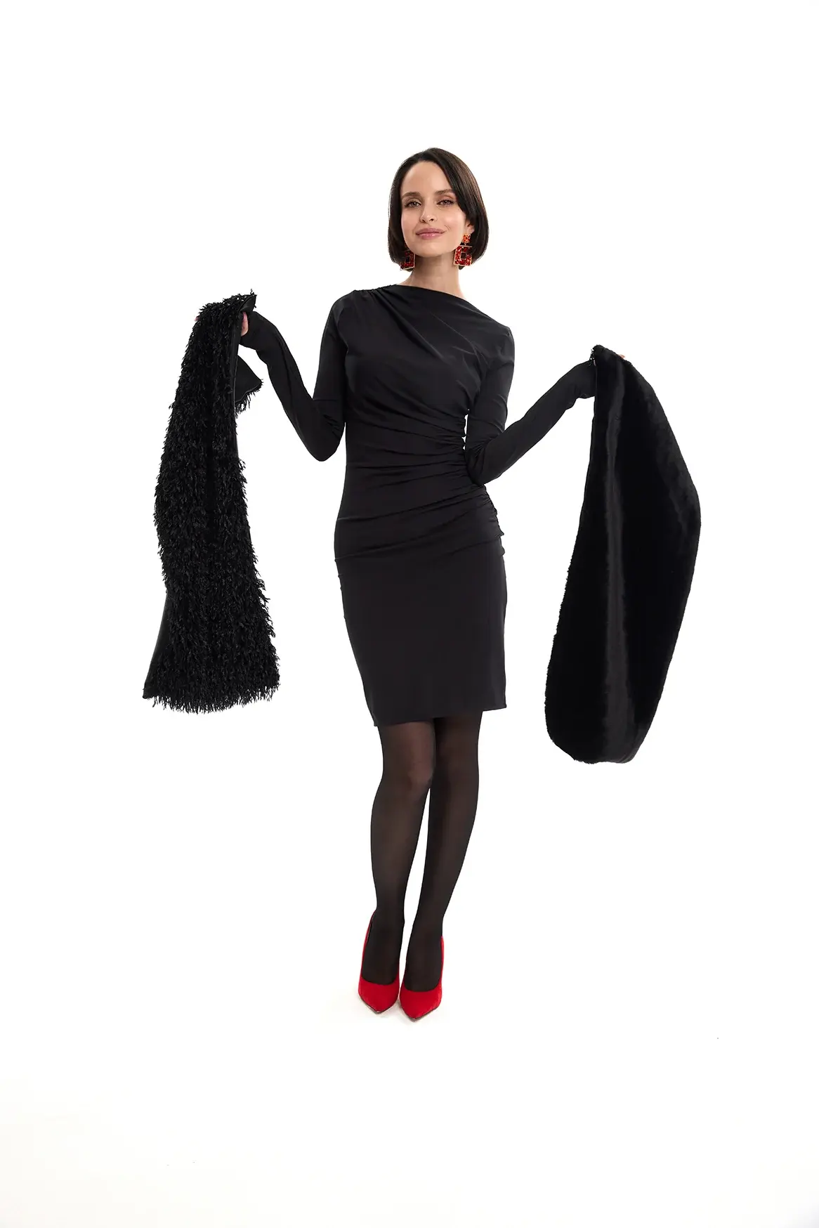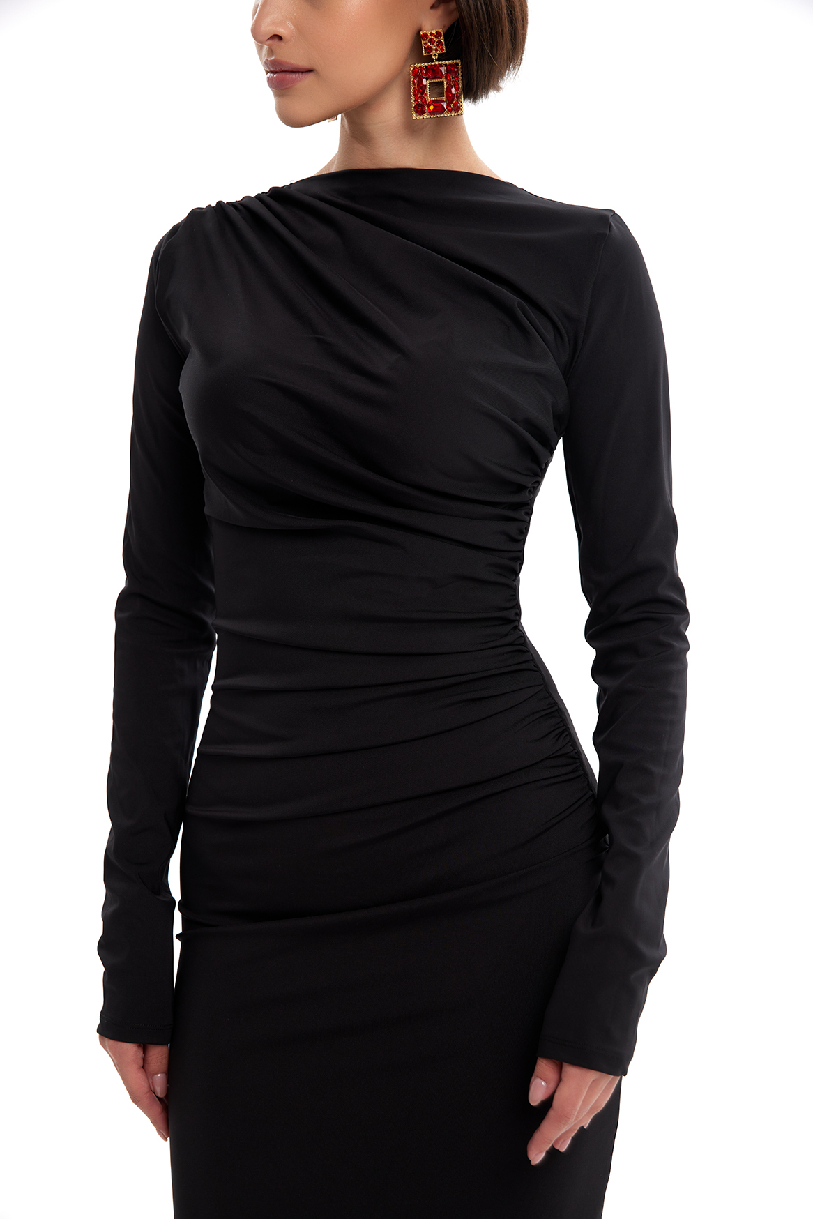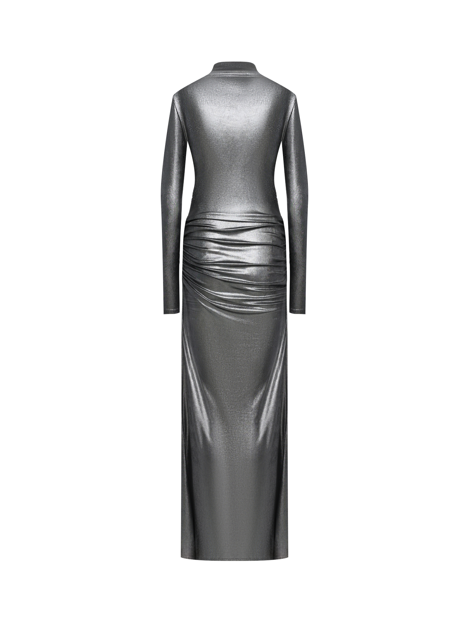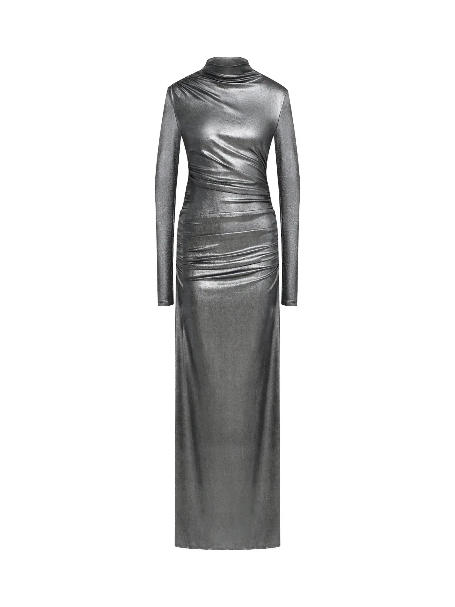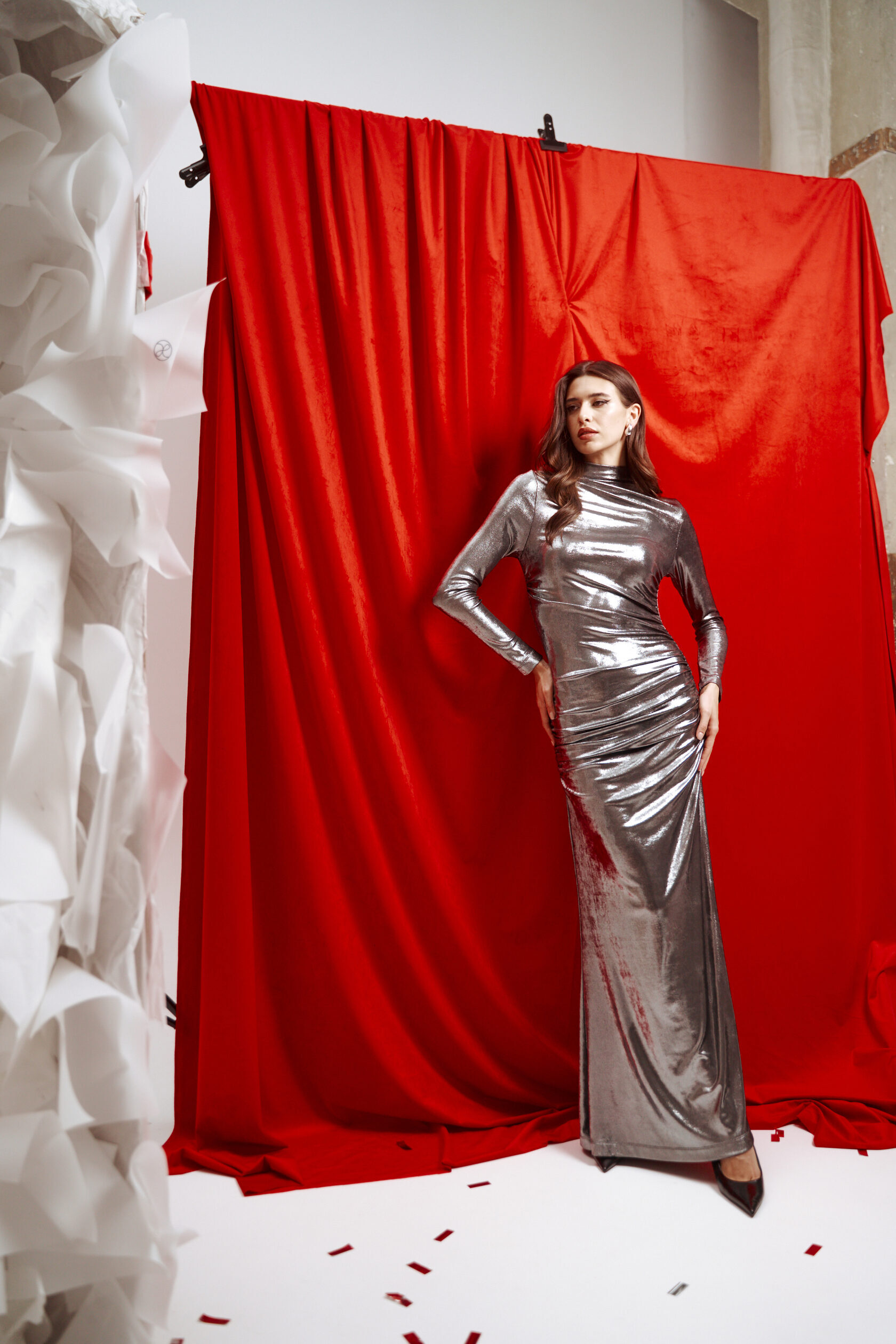 Элегантное платье макси из тонкого трикотажа с благородным блеском — воплощение стиля и комфорта! Эластичный и пластичный материал мягко облегает фигуру, не сковывая движений. Благодаря особым нитям полотно переливается на свету, создавая эффектный и запоминающийся образ. Ткань невероятно мягкая, приятная к телу и абсолютно непрозрачная. Длинные рукава и высокий ворот добавляют изысканности, а длина макси подчёркивает женственность.