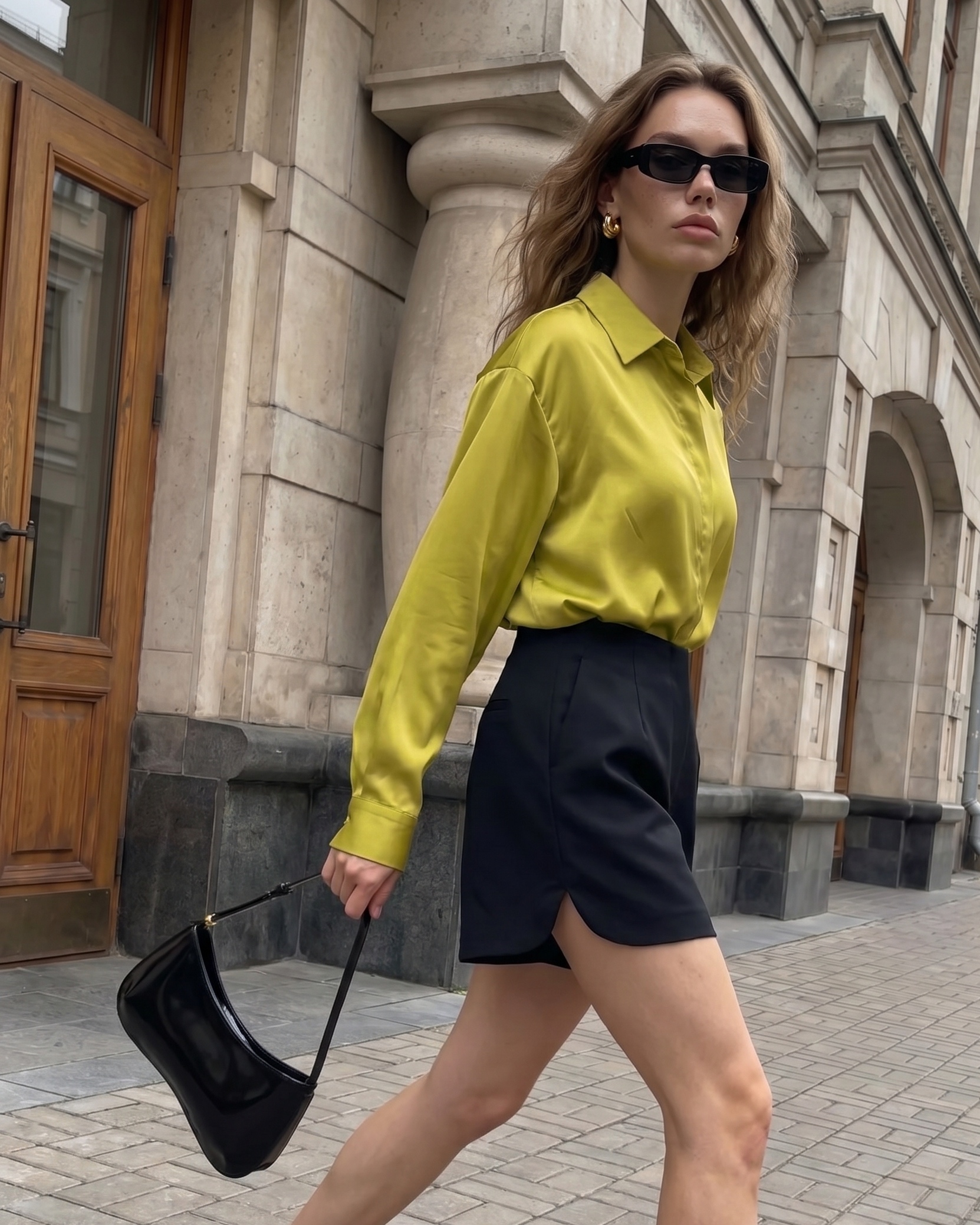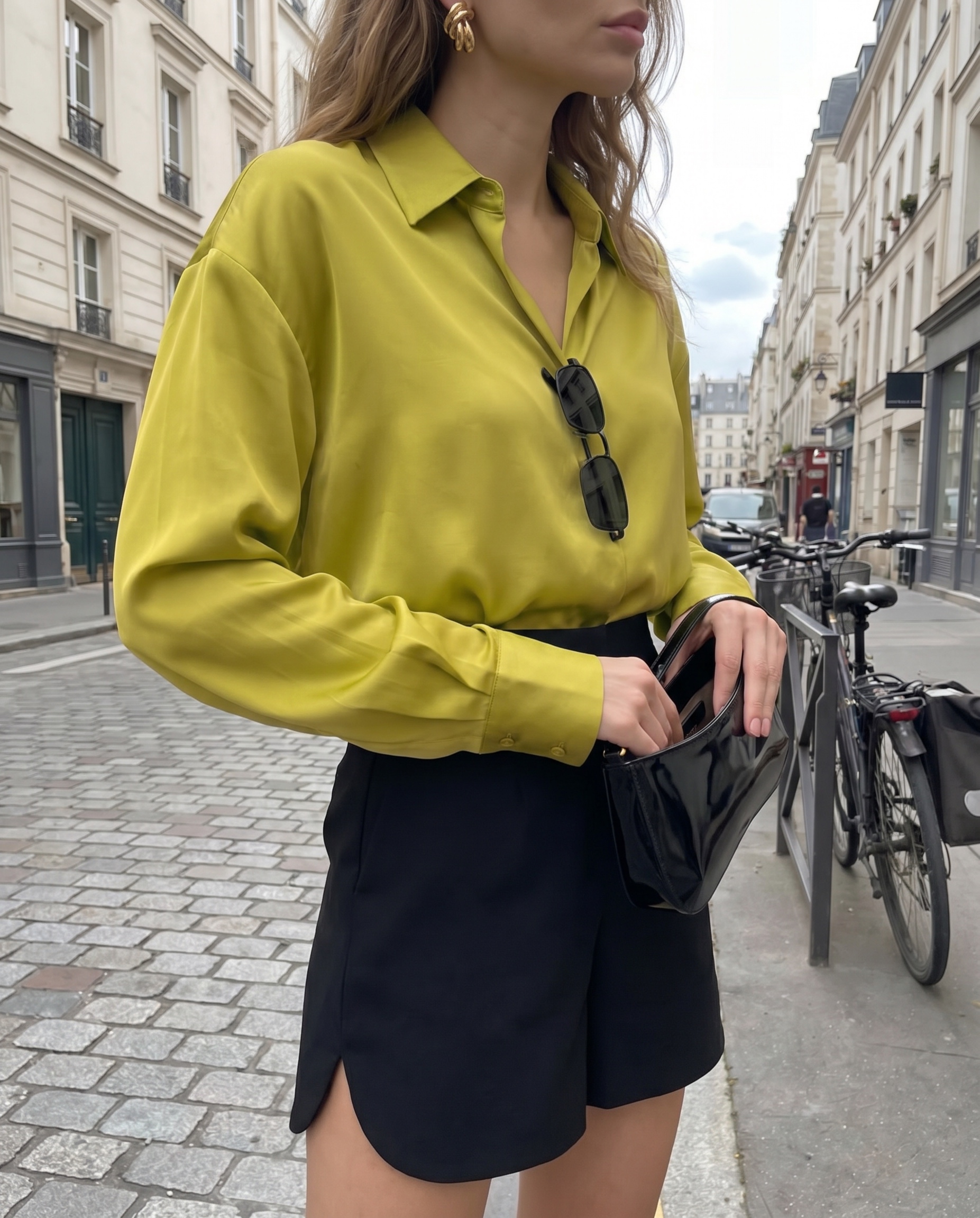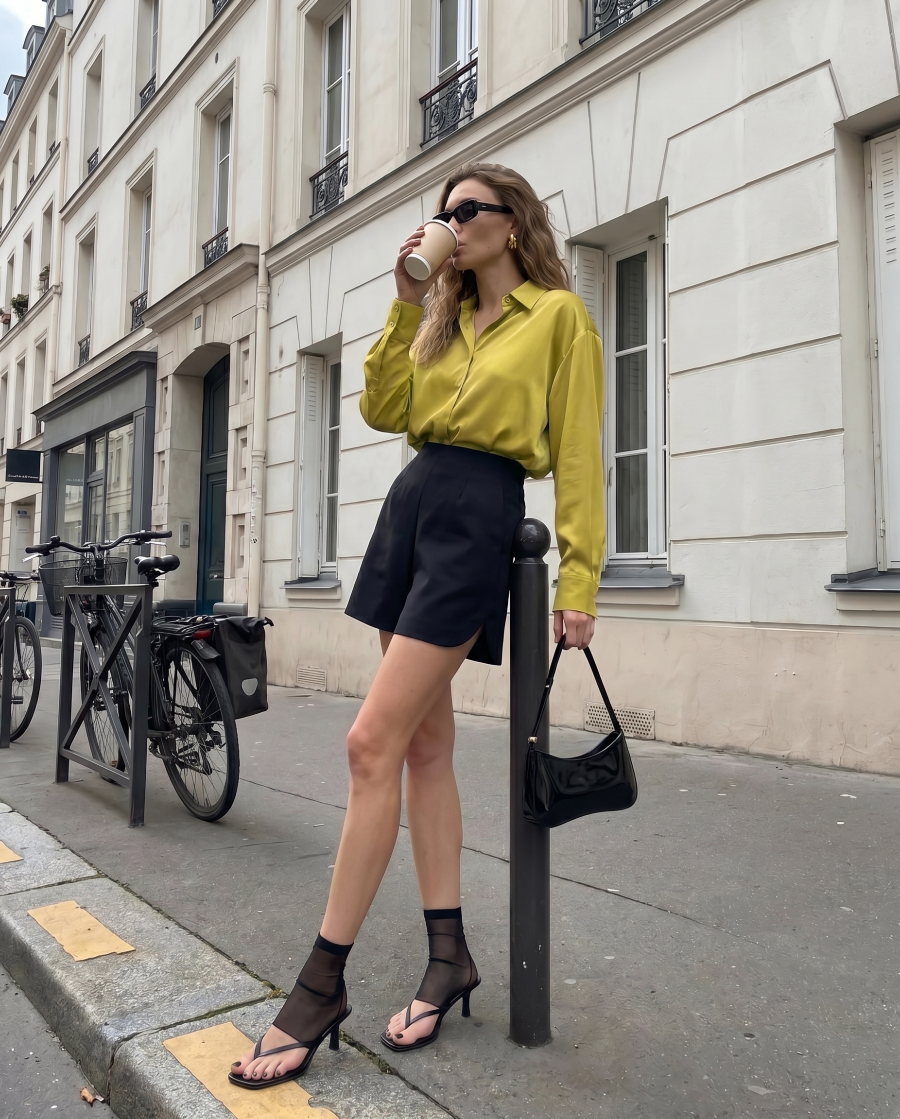 Костюмные шорты на высокой посадке с элегантными вырезами по бокам.