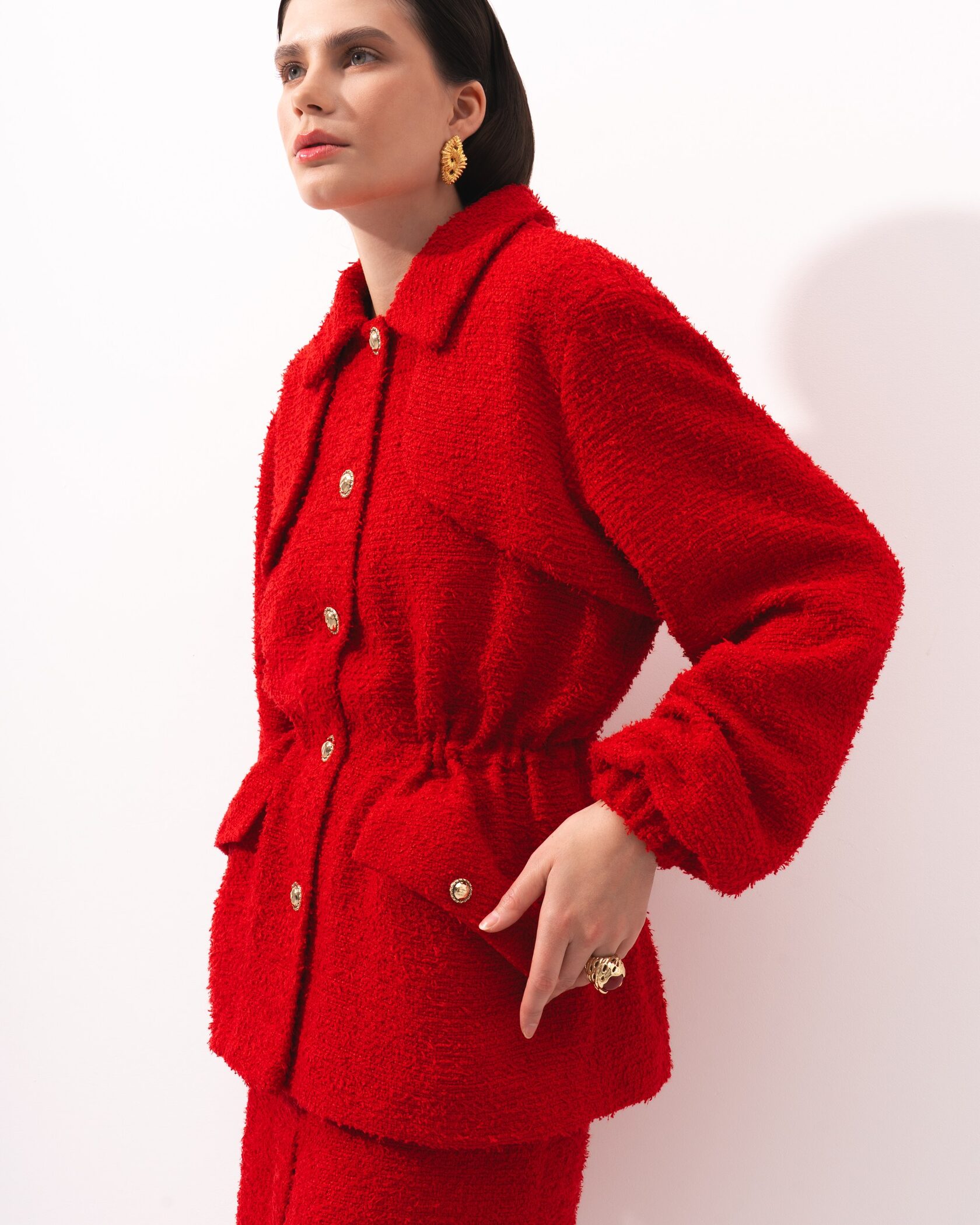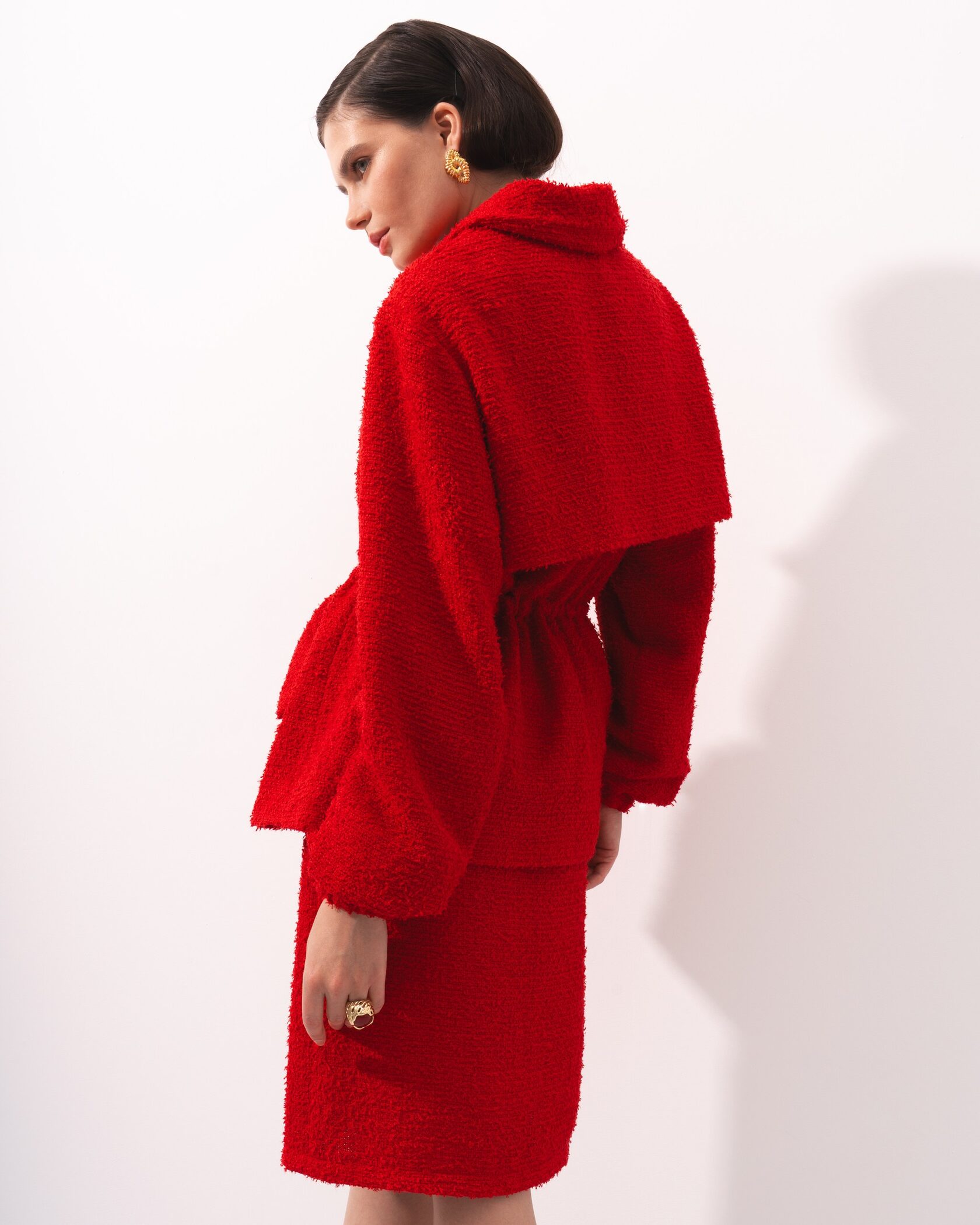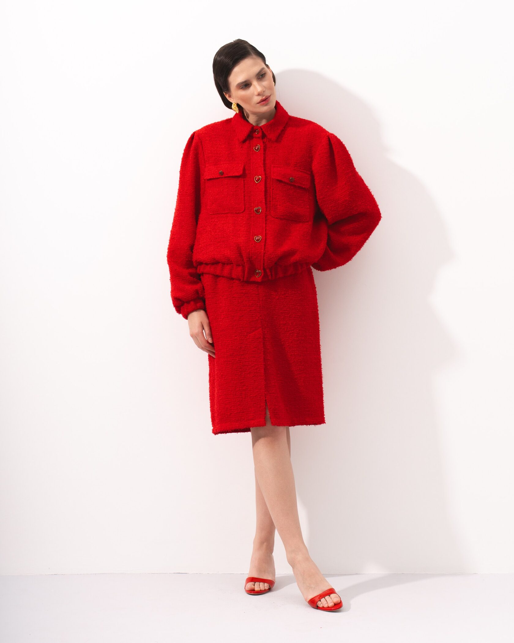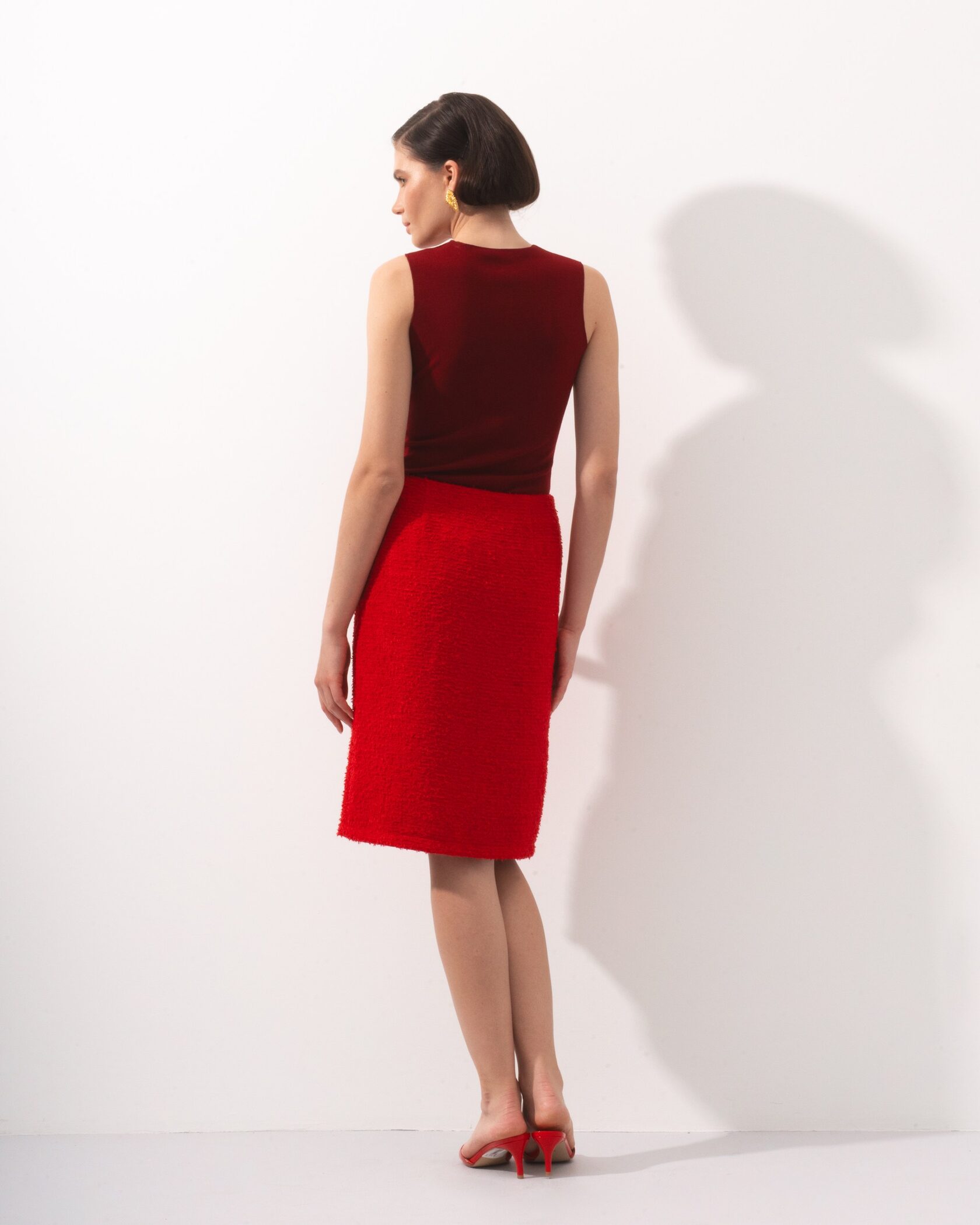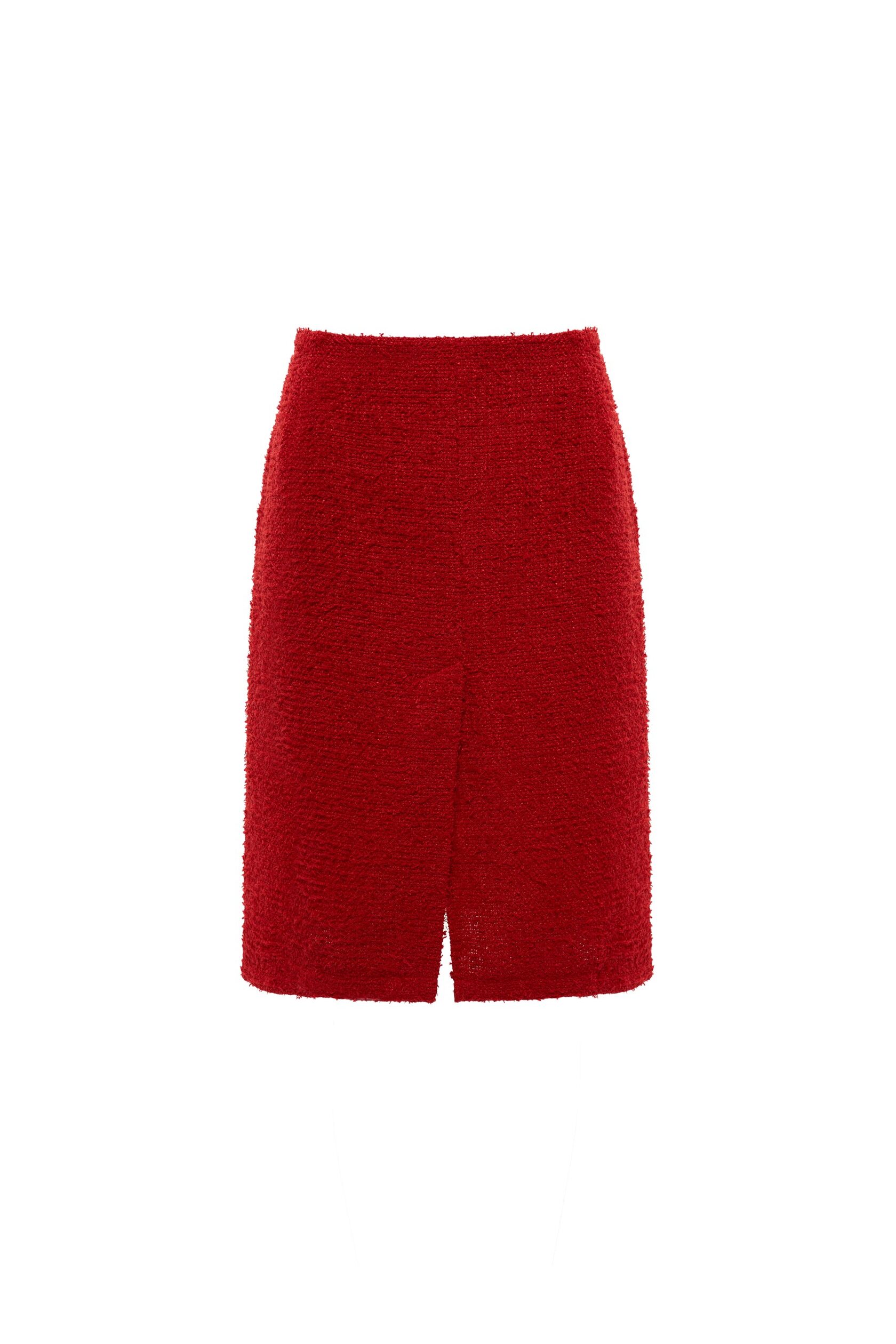 Элегантная твидовая юбка насыщенного красного цвета — идеальный выбор для стильных и уверенных образов. Модель выполнена из фактурного твида, который держит форму и придаёт изделию благородный вид. Прямой крой подчеркивает силуэт, а аккуратный разрез спереди добавляет комфорта при движении и лёгкую нотку женственности.